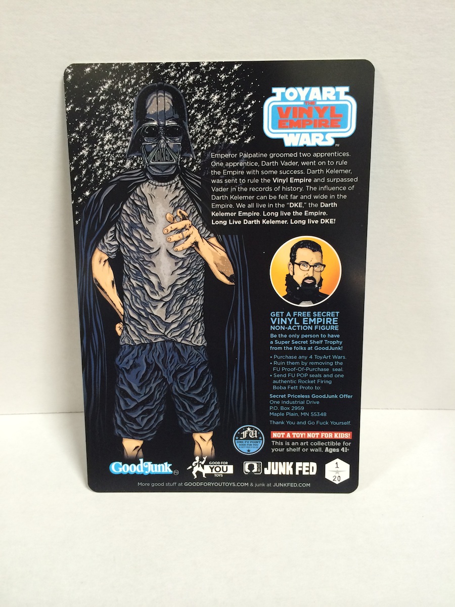 Good For You Toys has teamed up with Junkfed, under the GoodJunk name, to bring fans of Dov Kelemer the Darth Kelemer inaction figure. A tribute to Dov, for his 41st birthday, this figure is for ages 41 and up. It's an edition of 20 pieces, of which 19 pieces will be available for sale. He comes complete with signature grey shirt, black shorts and sandals. And since he is the collector of collectors, they gave him his own micro Darth Kelemer carded with custom bubble in mint and ready to grade condition. They'll be available for sale from www.goodforyoutoys.storenvy.com on Friday September 12th 2014 at Noon PST for $100.00 plus shipping.