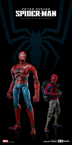 Marvel x ThreeA have announced the Peter Parker x Spider-Man 1/6th Scale Collectible Figure Set designed by artist Ashley Wood. Thespecial two-figure set that puts a signature Ashley Wood style on one of the most widely recognized and beloved super-hero characters in the world - Spider-man. Boy genius Peter Parker and his trusty remote controlled Spider-Bot are ready to hit the streets and take down crime.