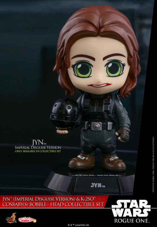 Hot Toys has announced a new Cosbaby set from the upcoming film Rogue One: A Star Wars Story. The Jyn Erso (Imperial Disguise Version) and K-2SO Cosbaby(S) Set is expected to be released between Q4 of 2016 to Q1 of 2017. The Jyn Cosbaby stands approximately 4.33 inches tall with base while K-2SO stands approximately 4.72 inches tall with base. K-2SO is available individually and in a 2-pack set with the exclusive Jyn Erso (Imperial Disguise Version).