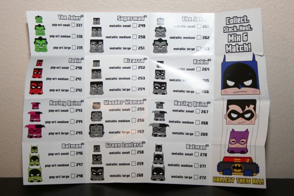 The stylized character designs lend themselves to the simple cube shape. And as you can see in the above photo, they can be easily stacked to display. The only tricky character is The Joker, because he’s sporting a little cowlick or something sprouting from the center of his head. So you don’t get a flat base to balance the next cube on it.