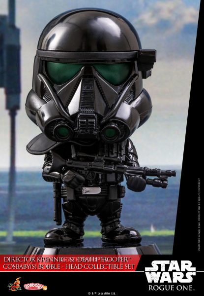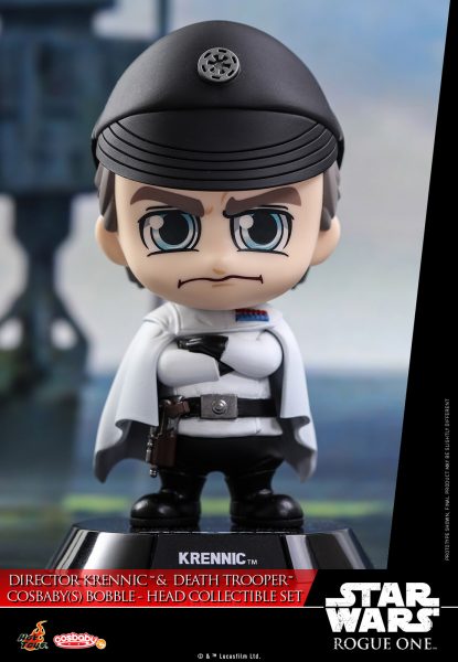 Hot Toys has announced a new Cosbaby (S) Collectible Set featuring Director Krennic with an exclusive alternative version of the Death Trooper Specialist holding a long range blaster rifle. Each Cosbaby stands approximately 4.33 inches tall with a base and features a bobble-head. Look for them to be released sometime between Q4 of 2016 and Q1 of 2017.