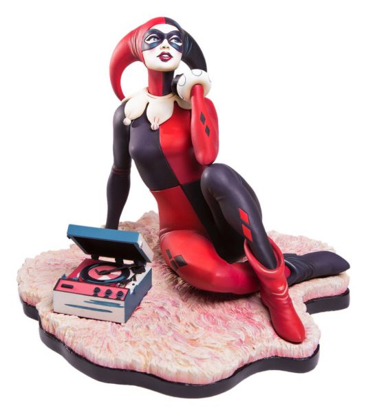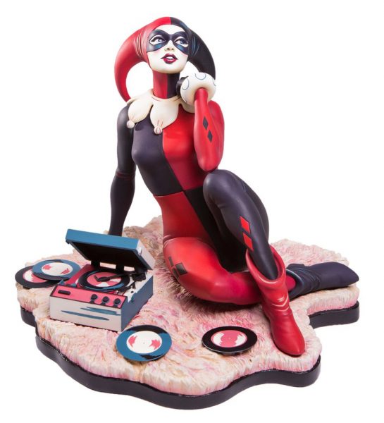 Mondo has announced a new Harley Quinn polystone statue. Based on the poster and 7-inch vinyl record sleeve by Matt Taylor, the Waiting for My J Man statue features a lovelorn Harley Quinn relaxing on a swanky shag carpet and listening to her favorite tunes as she waits for a certain someone to come home.