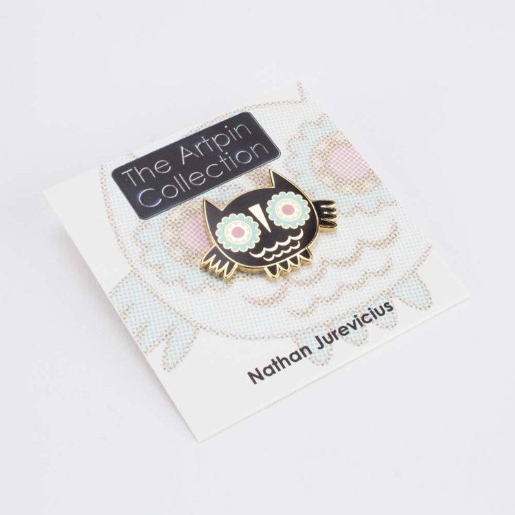 Secondly, there's Arianhrod from internationally acclaimed Scarygirl creator artist Nathan Jurevicius. The 1.25-inch hard enamel pin on a card, available in two colors. Each one is released in a limited edition of 75 pieces.