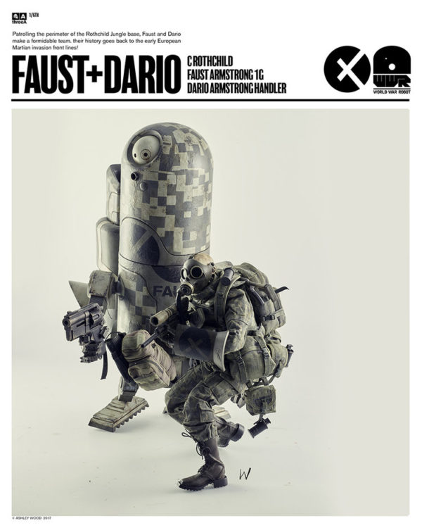 3A Toys is currently taking pre-orders for their WWR FAUST + DARIO 1/6th set, designed by artist Ashley Wood, over at Bambaland. The 1/6th scale set includes a 14.8-inch tall Faust Armstrong 1G and a 12-inch tall Dario Armstrong Handler. The set is currently available to pre-order for $420.00 (price includes worldwide shipping). It's expected to begin shipping in Q4 of 2017.