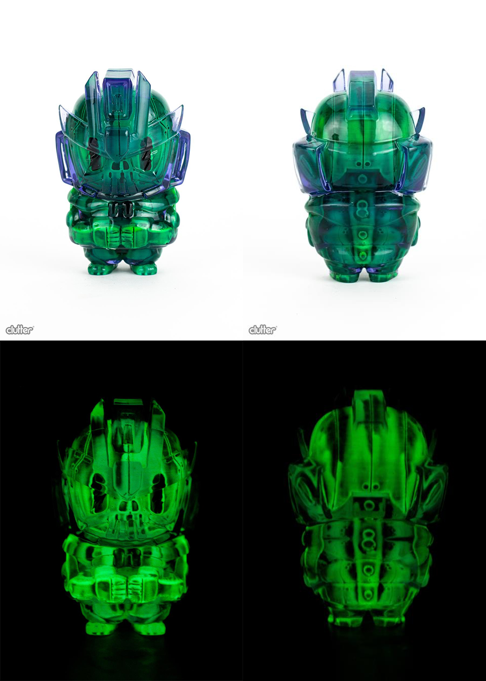 Clutter has announced the pre-order release of their CoreTEQ GID Martian Glow Edition. The Mega Nano hand (double) cast resin collectible stands 5.5 inches tall. From artist Quiccs, this version is produced with a glow-in-the-dark green internal core robot with a translucent purple exterior. Produced by Clutter Studios, this version is limited to a run of 100 pieces. It's currently available to pre-order for $250.00 and expected to ship by October 31st 2019.