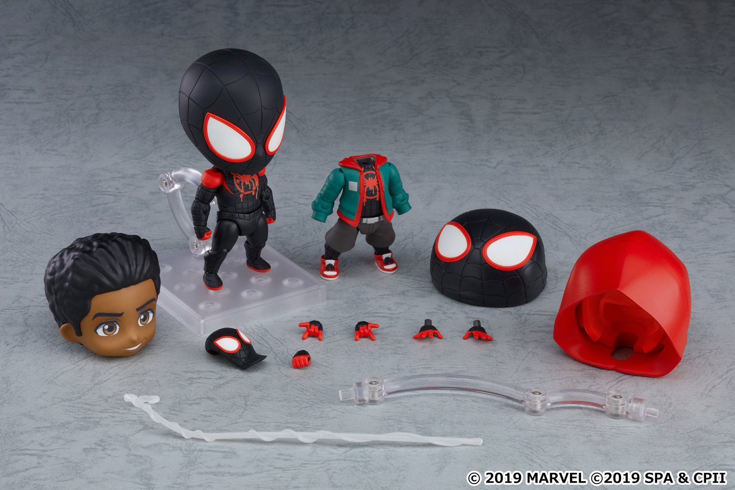Goodsmile has announced that - from the "Spider-Man: Into the Spider-Verse" film - Miles Morales is joining the Nendoroid DX Series. This DX version includes another complete figure body, featuring Miles' casual clothes layered over his costume. He can be displayed with or without his hood on. Two Nendoroid heads are included: a masked head as well as an unmasked head with removable front hair parts. A mask part that can be placed on top of his head is also included. Various interchangeable hands, a miniature mask, and an optional spider web are all included.